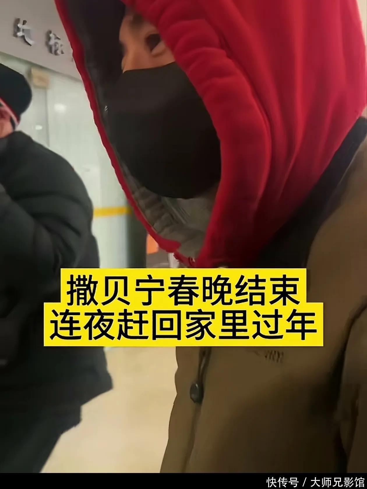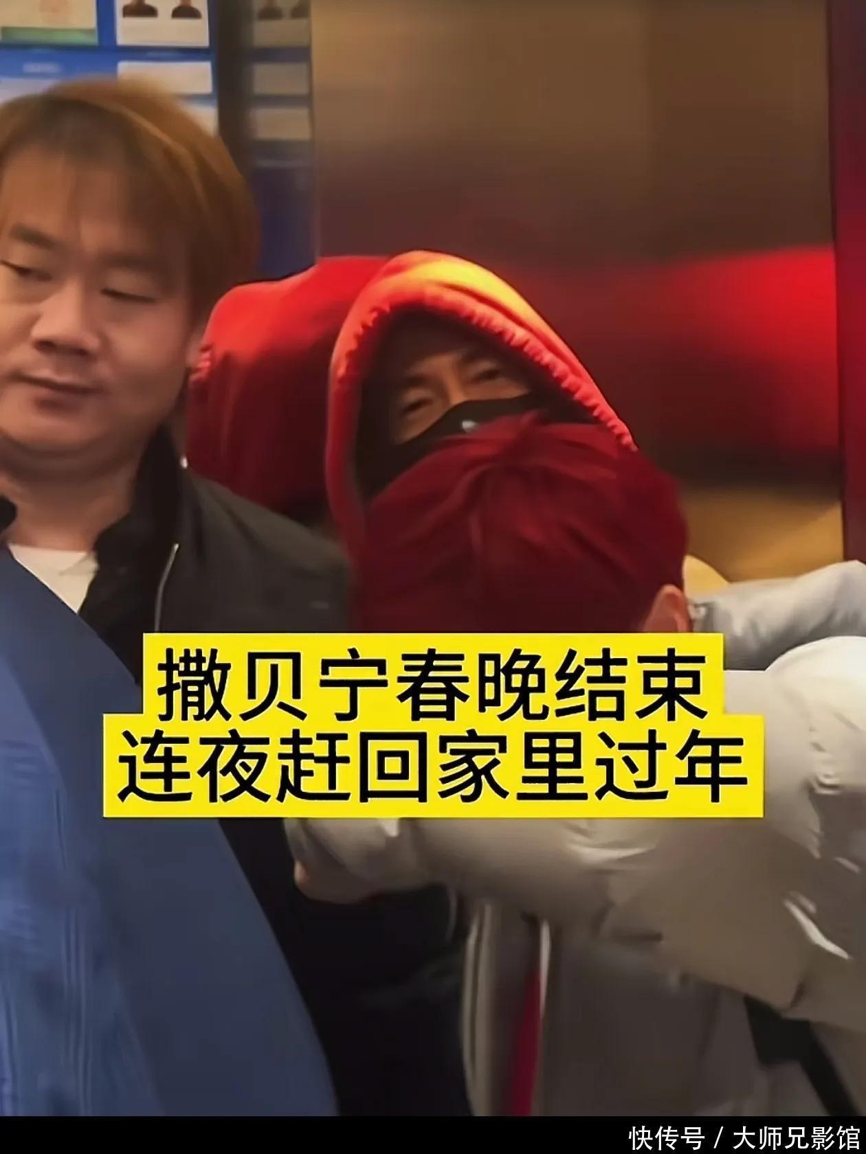 今年春晚刚一结束,撒贝宁就全副武装,连夜赶车回家和妻子孩子团聚!只见撒贝宁穿着戴着红色帽子,戴着黑色口罩,只漏出了两只眼睛!
