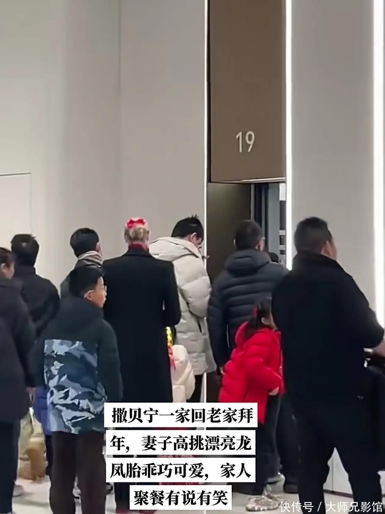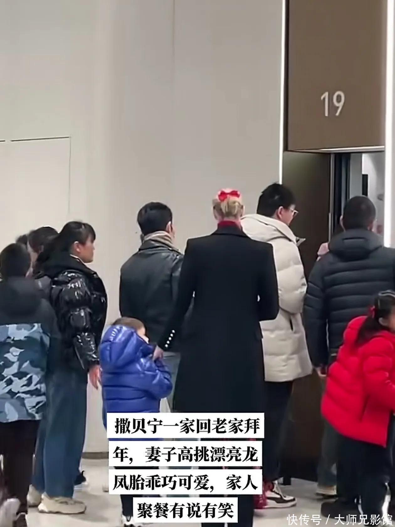 吃完饭后,撒贝宁又带着一家人去逛了商场,妻子李白身穿黑色大衣,光看背影就能看出,身材高挑,比撒贝宁还高一截!